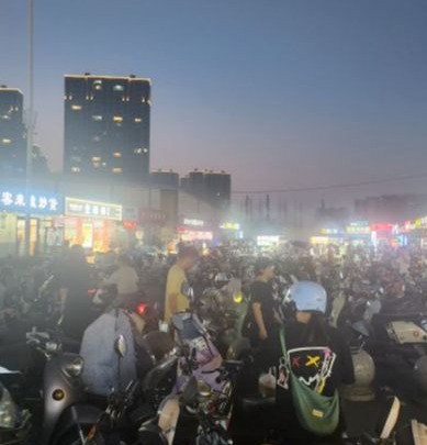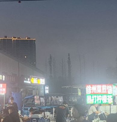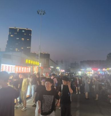 大学校园对面有夜市、小摊位、市场、人流量集中